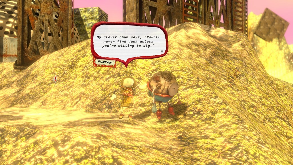 Okay, I have expended all the words I wish to regarding mechanics, because the real draw of Mashina lies in its aesthetics. Almost every graphical element is comprised of real-world objects and crafts. All the characters are hand-fashioned, stop-motion dolls, and their various paraphernalia made from the sort of odds and ends that turn up and live forever in junk drawers. As such, one of the undimming joys of this title is seeing new characters, drills, trinkets, and other props, and what they’re crafted from.